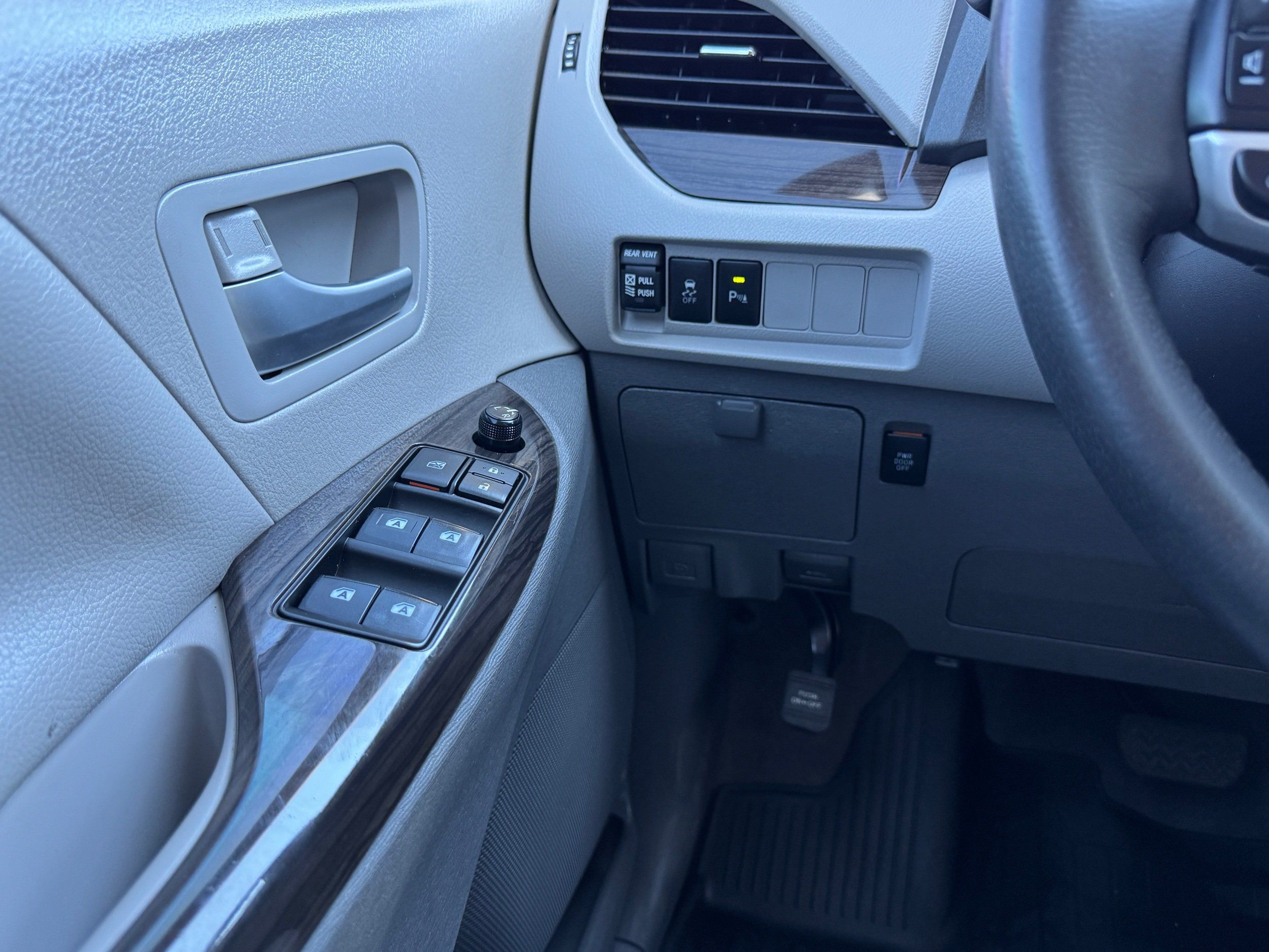 Inside, you’ll find leather-trimmed seats with heated front seats, tri-zone automatic climate control, and a navigation system with Entune™ Premium Audio featuring Bluetooth, USB, and voice recognition. Convenience is at your fingertips with power sliding side doors and a power liftgate, while safety is prioritized with Toyota Safety Sense™ P (Pre-Collision System, Lane Departure Alert, and Adaptive Cruise Control), along with a Blind Spot Monitor and Rear Cross-Traffic Alert.